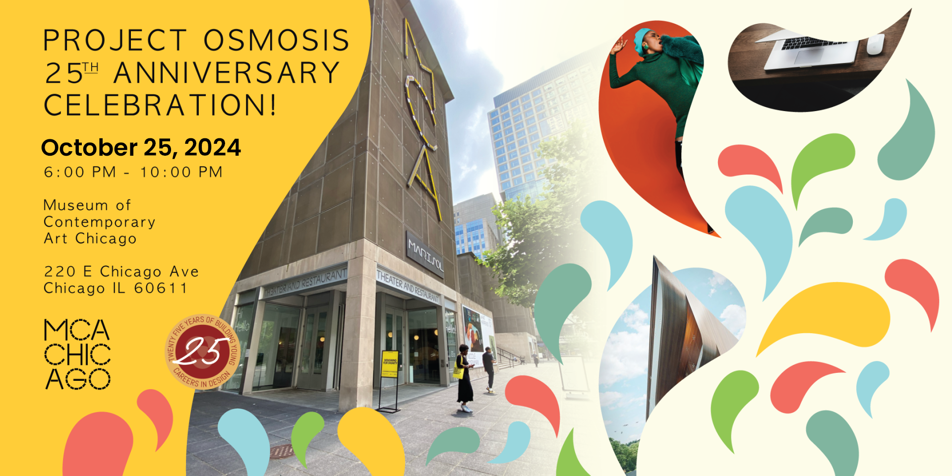 Join us on October 25, 2024, at the Chicago Museum of Contemporary Art to celebrate Project Osmosis’s 25 years of educating young creatives. Let’s unite to honor the achievements and contributions of our “Osmo-sites” in the creative industry. Stay tuned for our next post, which will feature a registration link so you can be part of this extraordinary event.